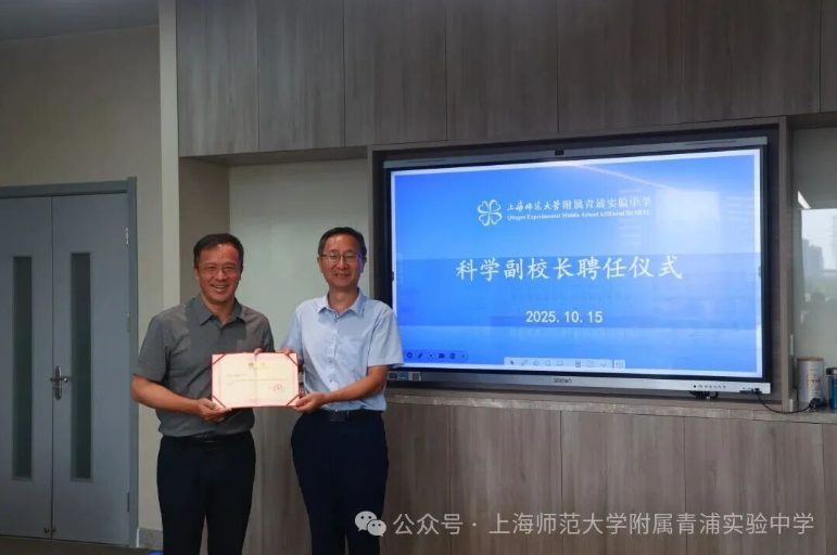随后,附属青浦实验中学举行了科学副校长聘任仪式。胡俊杰校长为潘建国教授颁发聘书。双方分别致辞,表达了对未来校企合作、共筑科技教育高地的期待与信心。这一举措标志着附属青浦实验中学在深化科教融合、强化师资队伍建设方面迈出了坚实的一步。