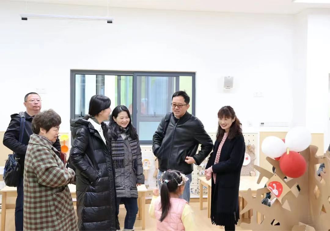郭长江一行参观了园舍环境和教育教学设施设备,与吴宝英、金春亚及行政团队成员进行了深入的对话交流,并走进班级观摩了托、小班生活环境和游戏活动,对孩子们充满活力和生趣的表现给予了高度认可,同时也对幼儿园营造的慧美向上的团队氛围和井然有序的工作状态给予了高度评价。
