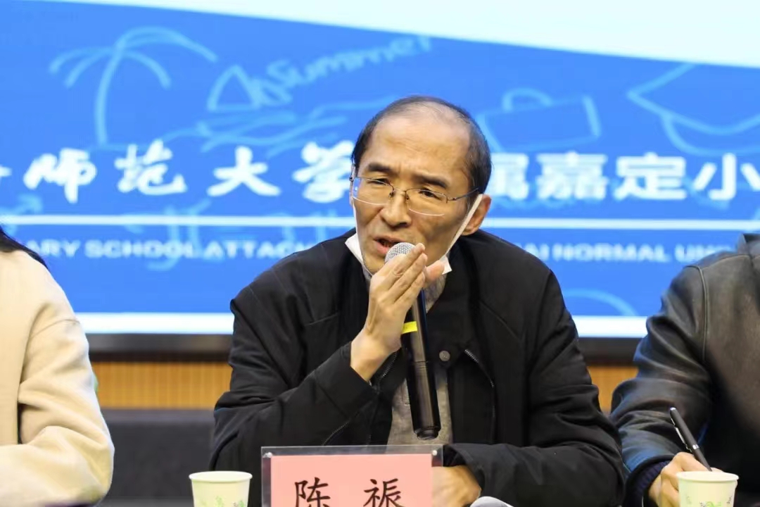 副处长郭长江, 王洁教授,上海市教师教育学院小学语文教研员特级教师陈祳,研修班班主任虹口区教育学院特级教师、正高级教师袁晓东,普陀区教育学院教研室副主任正高级教师颜欣玮,嘉定区教育学院小学教研室主任周雅芳,嘉定区教育学院小学语文教研员张艳等专家,研修班全体学员以及上师大嘉定附小语文教师参加了此次活动。