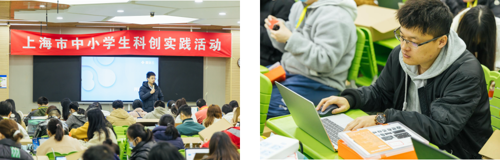 本次活动是由上海市教师教育学院和 基础教育发展研究院等单位的专家经过多次研究和筹备所举办,至此开启了“师生同训与师生共创”的科创实践活动的新模式。启动仪式结束后,来自上海16个区的近300名中小学老师和学生共同参加了当天的培训活动,通过项目式学习,师生利用编程软件和前沿的开源硬件教学设备,轻松解锁编程、人工智能、物联网等技术,了解人脸识别、物体追踪、自然语言处理等功能,培养了学生的创造能力、设计思维、 计算思维与综合素质能力,增强了师生发展活力和创新活力。