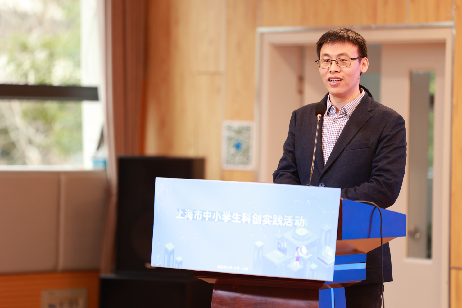 上海市教师教育学院王洋院长在致辞中表示,本次活动全市近300名师生齐聚浦师附小,是在为科创教育播撒希望的种子。2021年以来“双减”一直是最为热议的话题,也是教育督导的“一号工程”;教育的本质最后还是要回归到育人,我们作为教育从业者,应该为孩子们提供更多的机会,培养他们的逻辑思维、创新思维、批判性思维,促进学生的全面发展。教育强,则科技强。此次活动以师生为主体,以课程为支撑,以过程性评价贯穿始终。希望教师们在这次培训与实践中,成长为新一批科创种子教师,充分发挥教师的价值和优势,完成科创类校本课程的孵化;希望学生们可以在“好玩”中带着兴趣活动,在“原理”中带着思考动手,在“探索”中带着精神创新,最终实现师生数字素养的全面提升。