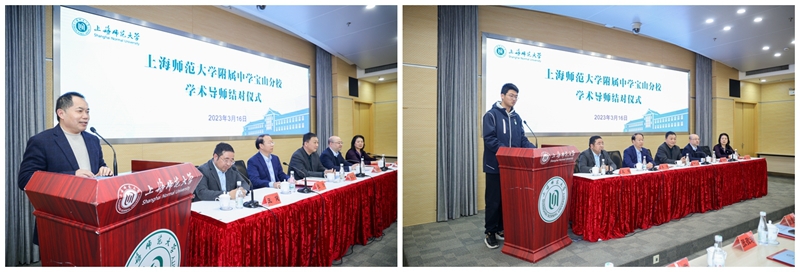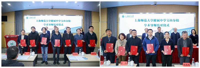 张峥嵘宣读了学术导师名单,首批担任 附属中学宝山分校的21位学术导师分别是: 高红霞、朱恒夫、陈昌来、查清华、朱振武、詹丹、李贵、罗俊龙、贺雯、黄海涛、孙红杰、张志丹、储继峰、刘国华、张敬涛、王飞飞、张毅闻、李利珍、贾能勤、朱建、张波。与会领导分别为导师颁发学术导师聘书。