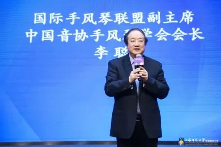 国际手风琴联盟副主席、中国音协手风琴学会会长李聪上台讲话。在对上师嘉小“小海狮手风琴乐团”所有学员的成果汇报给予充分肯定和赞誉后,总结归纳“小海狮手风琴乐团”开办三年来的成功秘诀:一是社会音乐专业资源的充分开发与运用;二是学校为乐团大力搭建区、市、全国乃至国际艺术展演平台;三是乐团建设发展始终与学校“乐融中西”艺术教育宗旨挂钩,从而让孩子们愉快学琴,伴随一生。