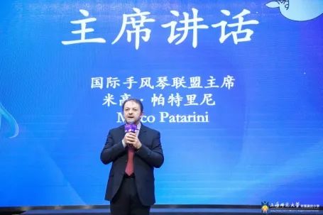 第一次来上海的国际手风琴联盟主席米高抑制不住内心的喜悦与兴奋,他表示非常感谢中国音乐家协会手风琴学会、上海音乐家协会手风琴专业委员会盛情邀请,尤为惊叹李聪副主席让上师嘉小的孩子们对手风琴艺术如此热爱,真正陶醉于指尖上的艺术,最后希望孩子们以“玩乐器”的放松心态坚持练习,再次荣登更大的舞台!