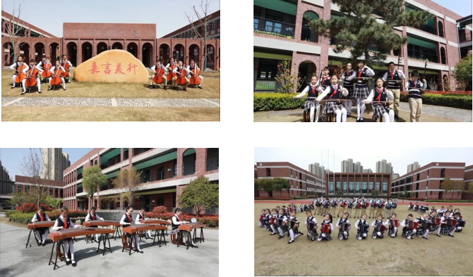 作为“嘉定区艺术教育特色学校”,一部用心制作的校歌器乐大片《与美相随》首秀上映,手风琴、弦乐、打击乐、数码钢琴、二胡、古筝、竹笛、琵琶……十多种乐器余音绕梁,华丽演绎“乐融中西”的无限魅力。