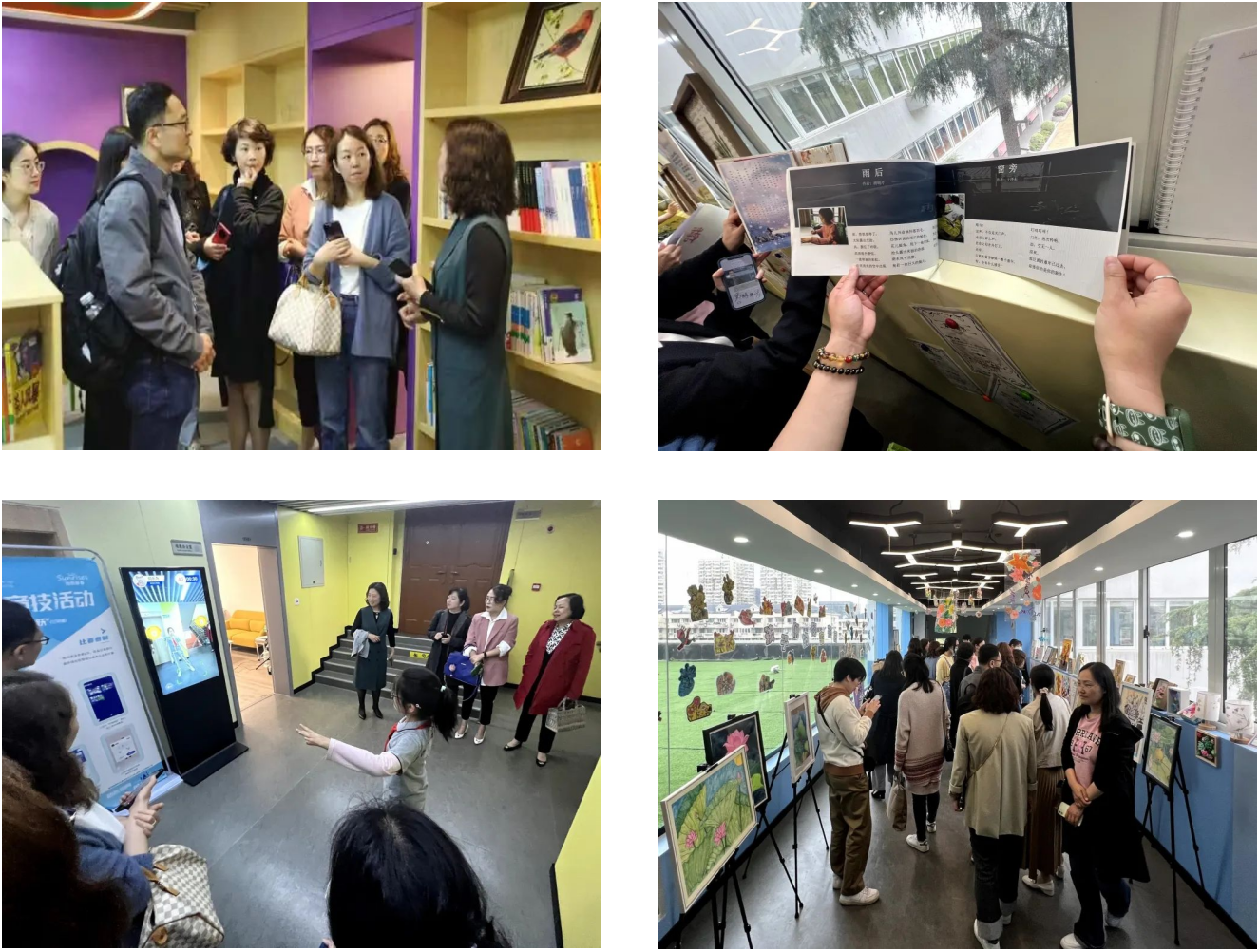 随后,在张琦的带领下,基地学员们参观了校园。学校虽然不大,但经历多年打造,实现了硬件环境与内涵发展融为一体的建设理念,呈现出独有的校园风貌。学校根据“六趣”课程的不同领域,为不同楼层赋予不同色彩,设计了不同主题,收集学生在丰富多样的学校课程活动中的作品进行展示,将校园变为多彩的学生舞台和成长平台。学员们在走廊中流连,在作品前赏析,在美丽的校园里学习、思考,提炼与成长。