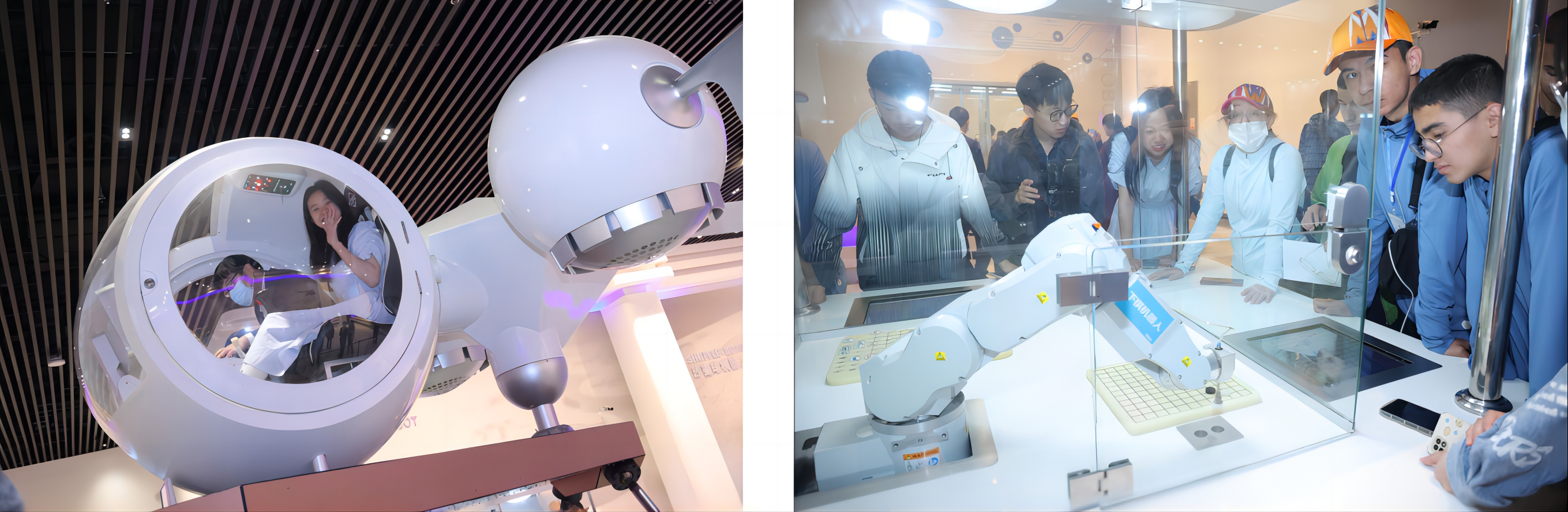 探访民族品牌娃哈哈集团和萧山机器人小镇。同学们了解到娃哈哈集团作为民营企业,在改革开放发展的进程中,通过自己的艰苦创业,从有到无,合资经营,引领创新才取得了今天辉煌的成就。在萧山机器人小镇,同学们沉浸在机器人的世界,感受未来必然不局限于在工业机器人一隅,在我们的未来,机器人应用场景将会更加多元化,甚至走入我们日常生活的各个角落。