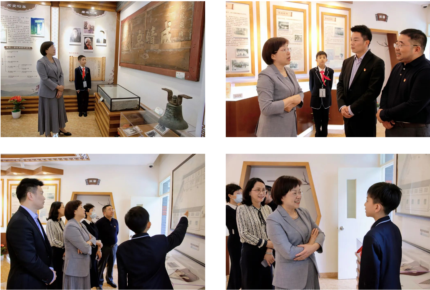 首先,袁园一行走进校史室,在红领巾讲解员的解说下,听取了学校校史的介绍,在听取的过程中,她非常关心校报《梅讯》在当下的传承与发展,并指出悠久的办学历史是梅溪的一笔宝贵财富,学校的发展要在传承的基础上进行创新。