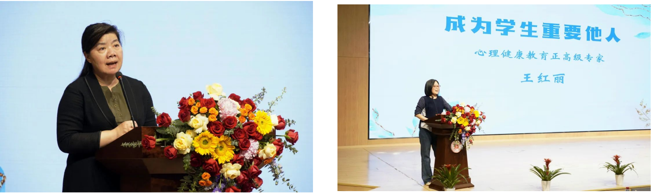 第二篇章由胡培华主持。王红丽从专业心理老师的角度剖析了“人生使命的阶梯递进”,揭示了作为教师在孩子成长中所起的重要作用,并倡导每一位老师都要成为学生的重要他人。